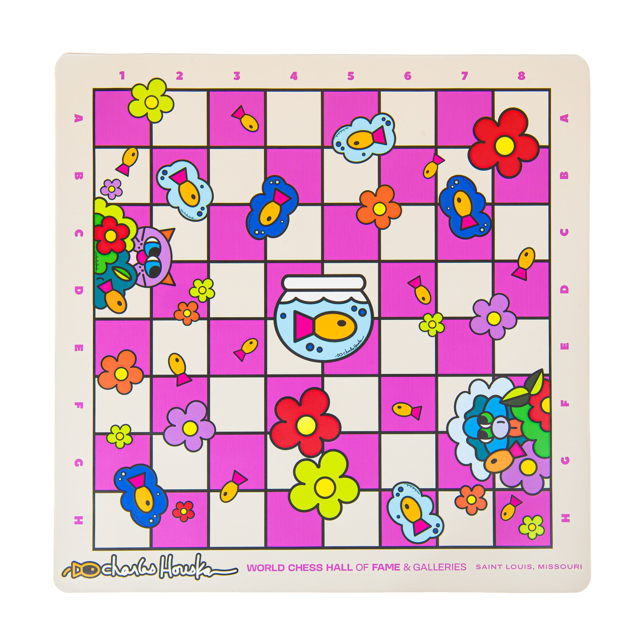 A durable, flat-laying chess board designed for consistent play, based on Charles Houska’s art. The roll-up vinyl surface is easy to clean, easy to store, and built for regular use at home, in clubs, classrooms, or tournaments.
